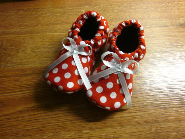 Doris beställde röda tofflor. Och eftersom jag dessutom blivit informerad om att hon gillar prickigt så blev det dessa.