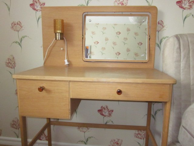 Tror det här kan bli jättebra. Bara en hylla också, till höger om bordet. Gör jag mig dessutom av med mitt gamla sminkbord från 60-talet så får jag rum med två hyllor. Just nu ligger det väldigt mycket grejer i soffan.