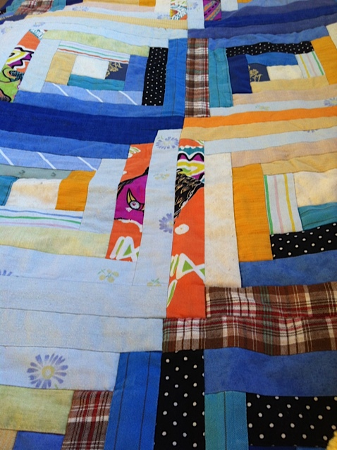 Jonas, sonen, sa när jag stolt visade upp mitt första lapptäcke och pekade på att det här är Jennys klänning och det här är dina ett par byxor: "Men... du har ju flyttat ett par gånger sedan du sydde de där sakerna!". "Ja." "Du menar inte att du packat ner och sedan packat upp dessa gamla tyger vid varje flytt?!"