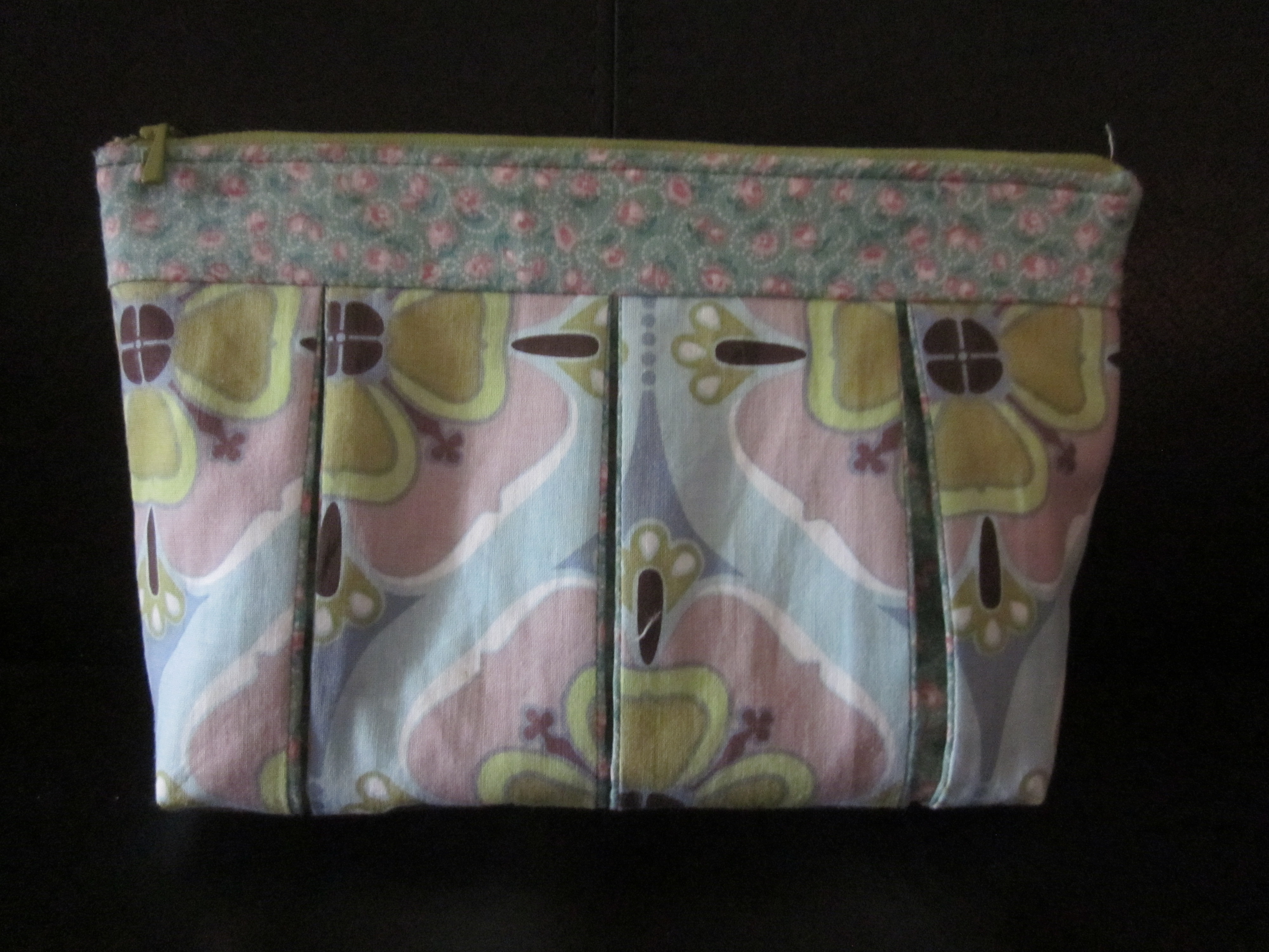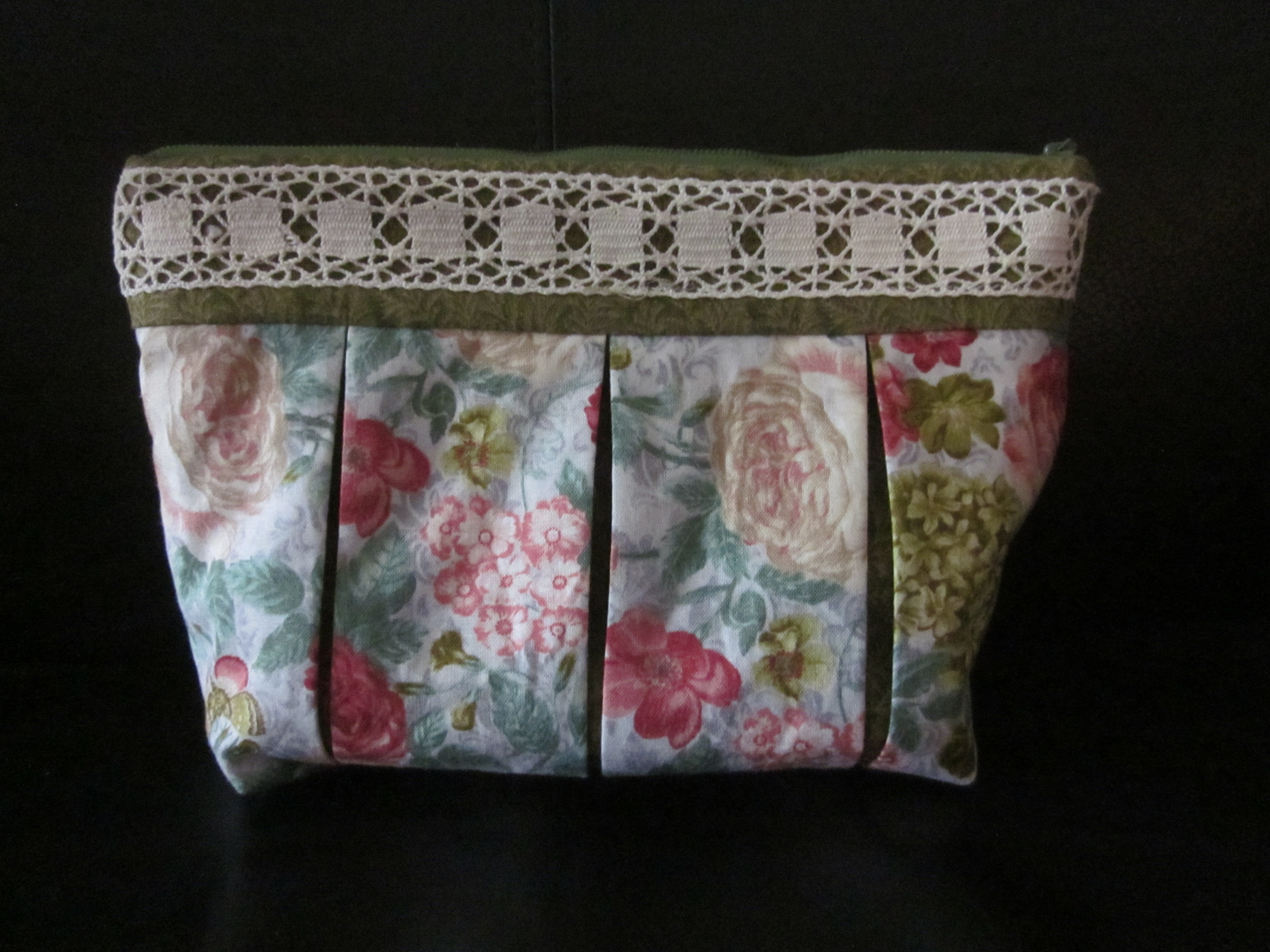 Se så fin den blev. Jag tycker den är helt underbar med det blommiga yttertyget och det gröna inne i bälgarna och på toppen. Även fodertyget är från Maja.