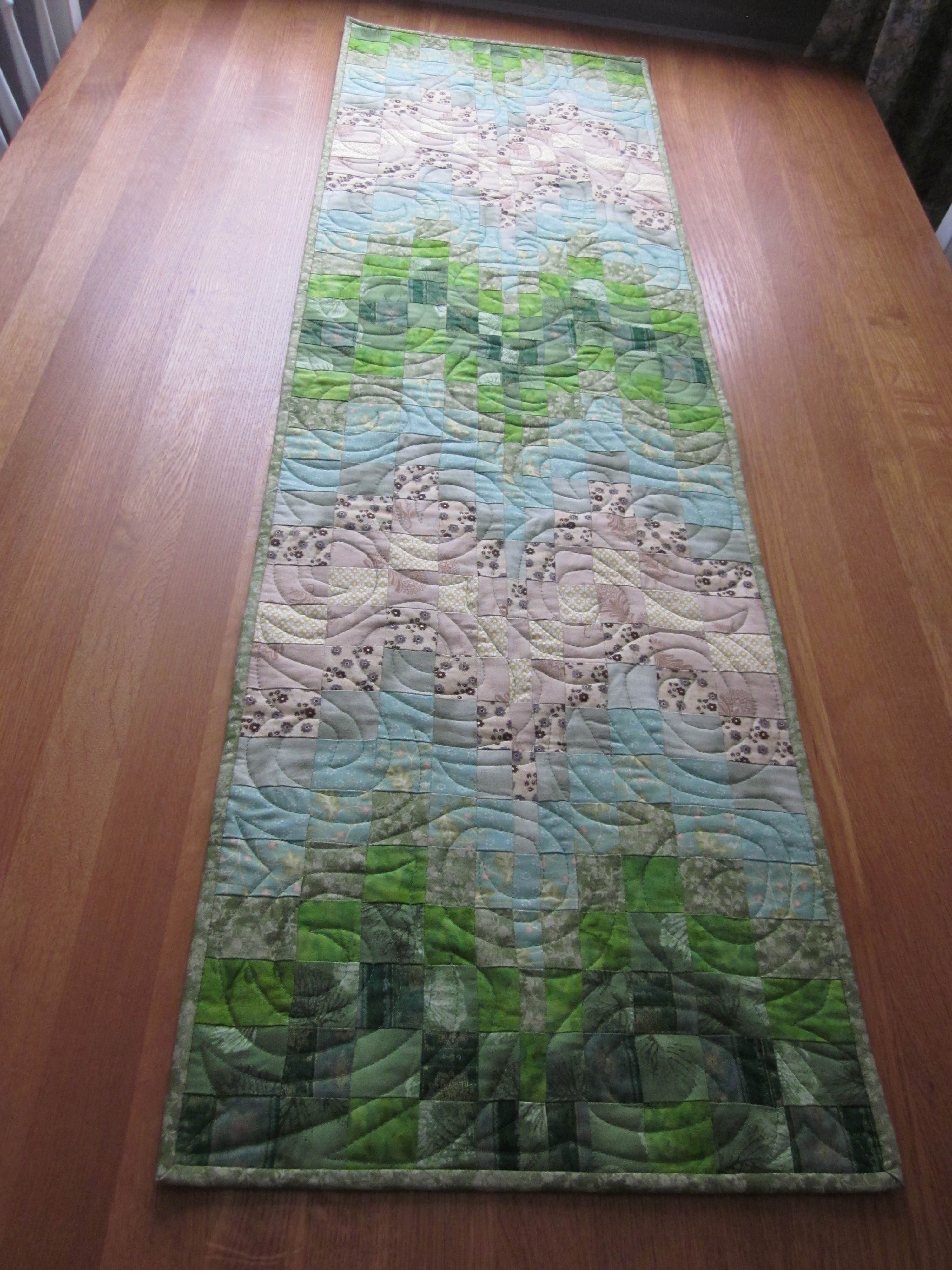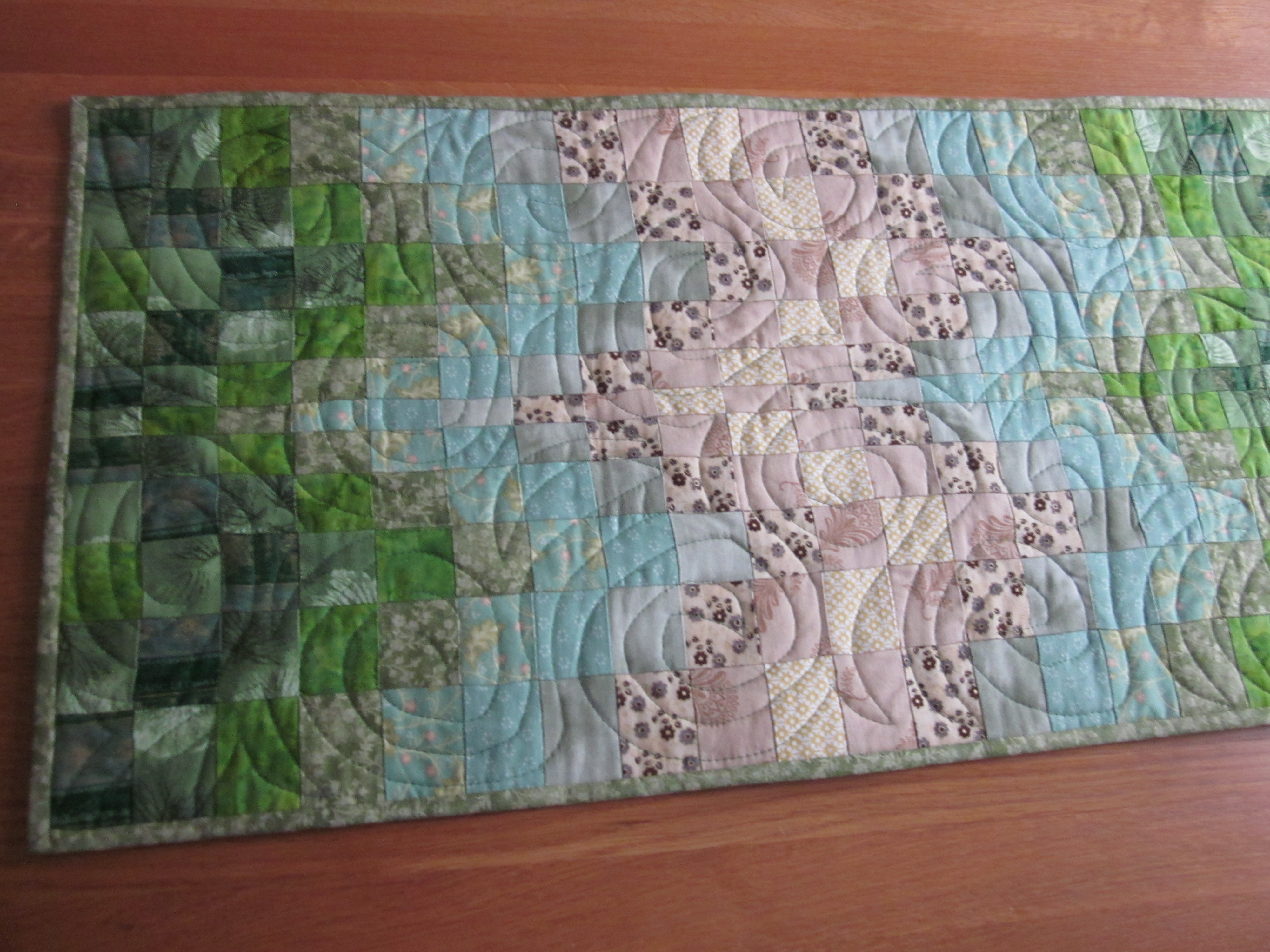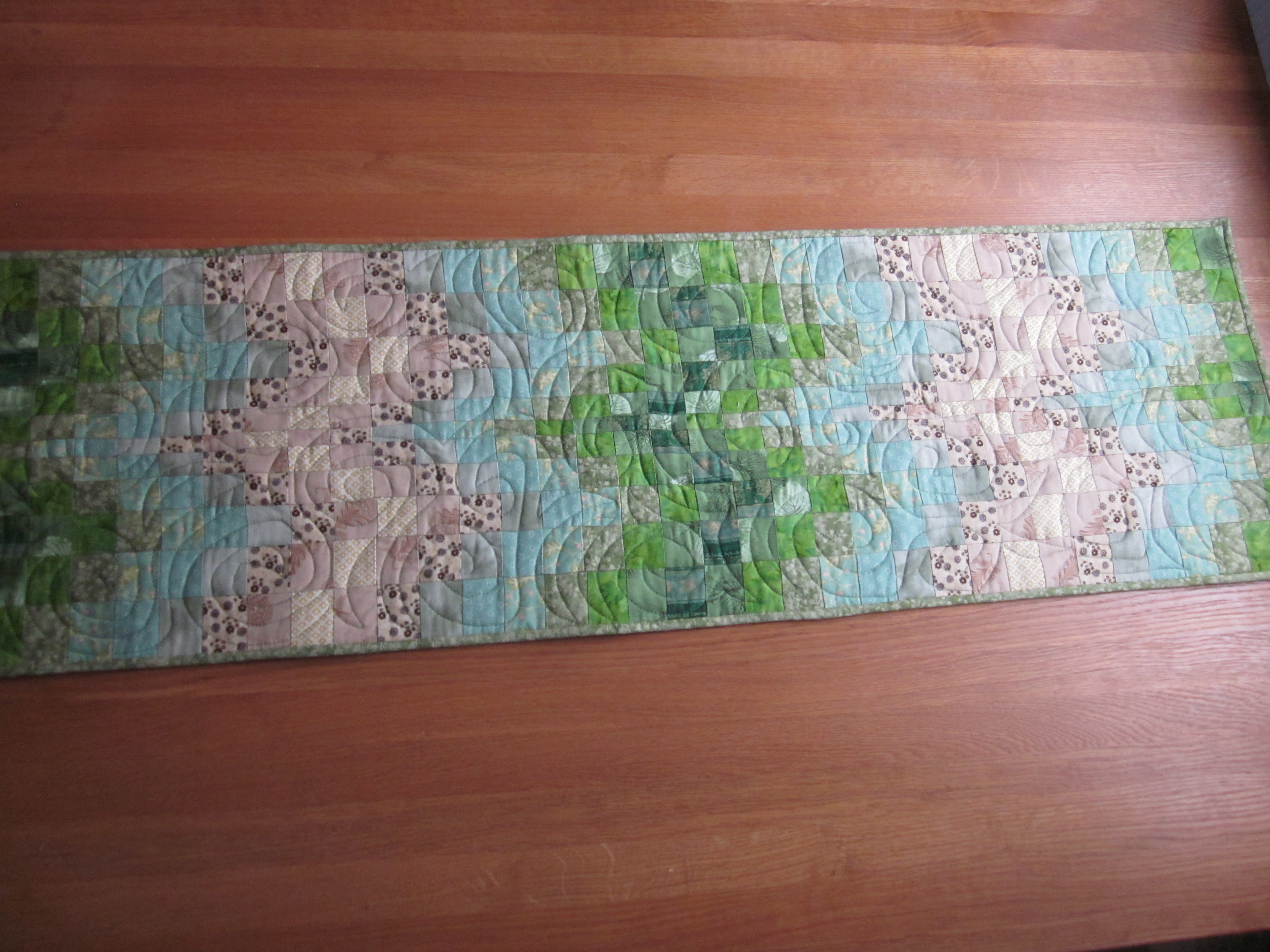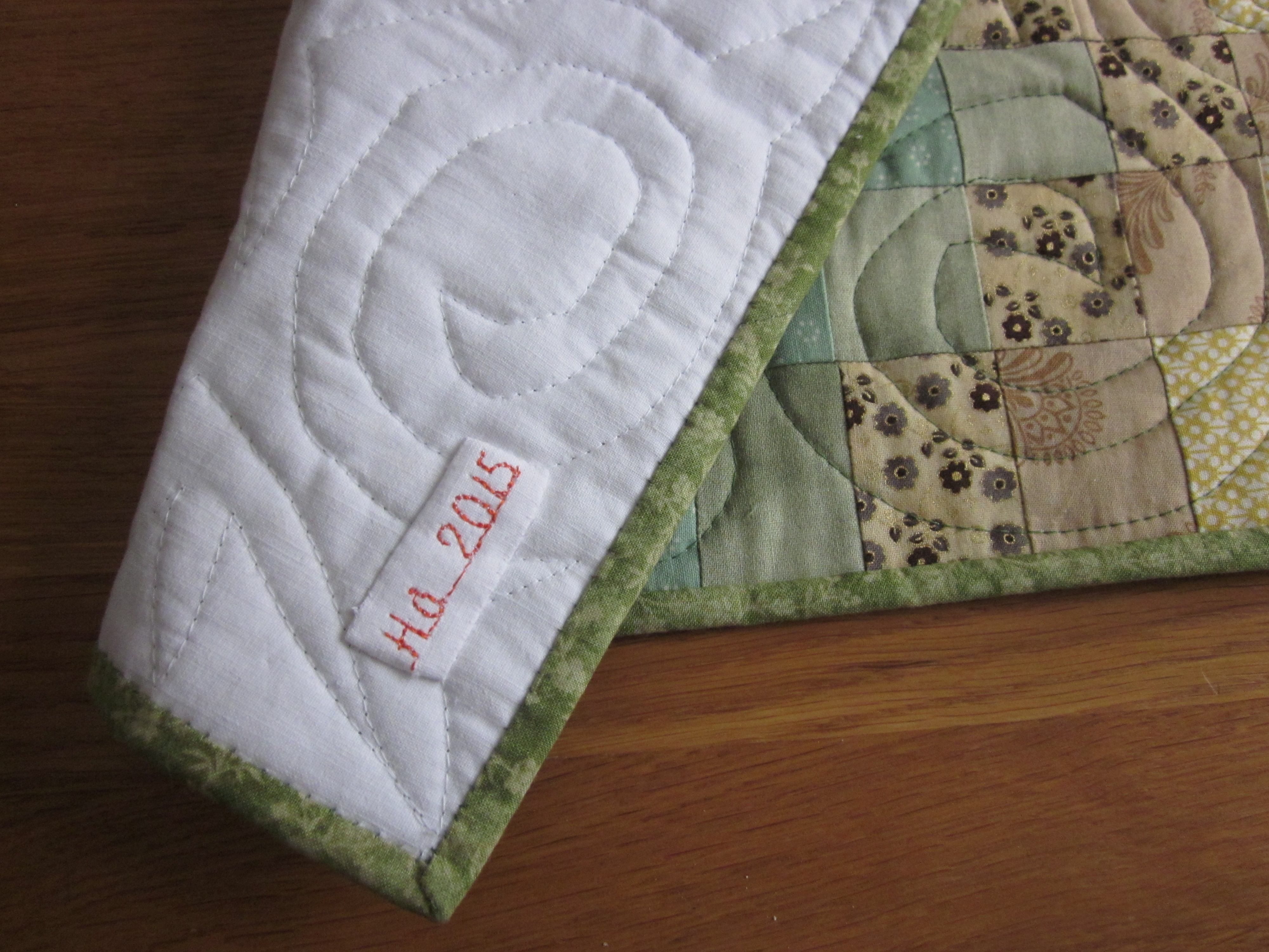 Jag har quiltat enligt ett mönster som man ser emellanåt här på nätet. Tänk om man kunde få sömmarna så där superjämna som så många andra klarar av. Det här har jag quiltat helt på frihand, med övermataren faktiskt. Det är väl lite fel men jag ville testa. Kanske borde man rita upp mönstret? Kan man få bågar och cirklar jämnare då? Eller är det bara övning som gäller? Vad finns det för tips och trix som jag inte känner till?