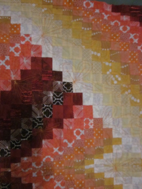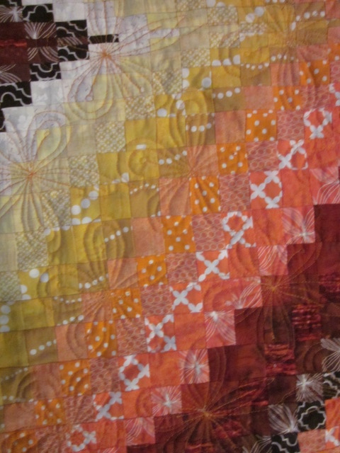 Men så går den riktigt fint vissa stunder så till slut lyckades jag bli färdig med quiltningen. Men mycket sprättning blir det. Och avslitna trådar som måste fästas. Fast jag är riktigt nöjd med slutresultatet. Om man klickar på bilderna ser man quiltningen lite bättre.