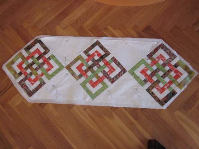 Nu har jag gjort två block till. Så blev det ytterligare en duk. Jag tycker nog att jag lyckades lite bättre med färgerna i den förra. Men den är läcker den här också. Nu återstår quiltningen. Och jag hörsammade Majas förslag att köpa Judi Madsens nya bok Quilting Wide Open Spaces. Har bara snabbt bläddrat igenom den. När jag lusläst den…. då jäklar anamma ska här quiltas! ;) Hoppas hoppas jag kan fixa lite grann av det hon visar. Fast hon kör ju allt i longarmmaskin. Det är en sån där sak som står på önskelistan, Sen. Sen när jag blir miljonär och flyttar till en ännu större lägenhet. DÅ ska jag skaffa en egen Long Arm symaskin!!! Ha ha!