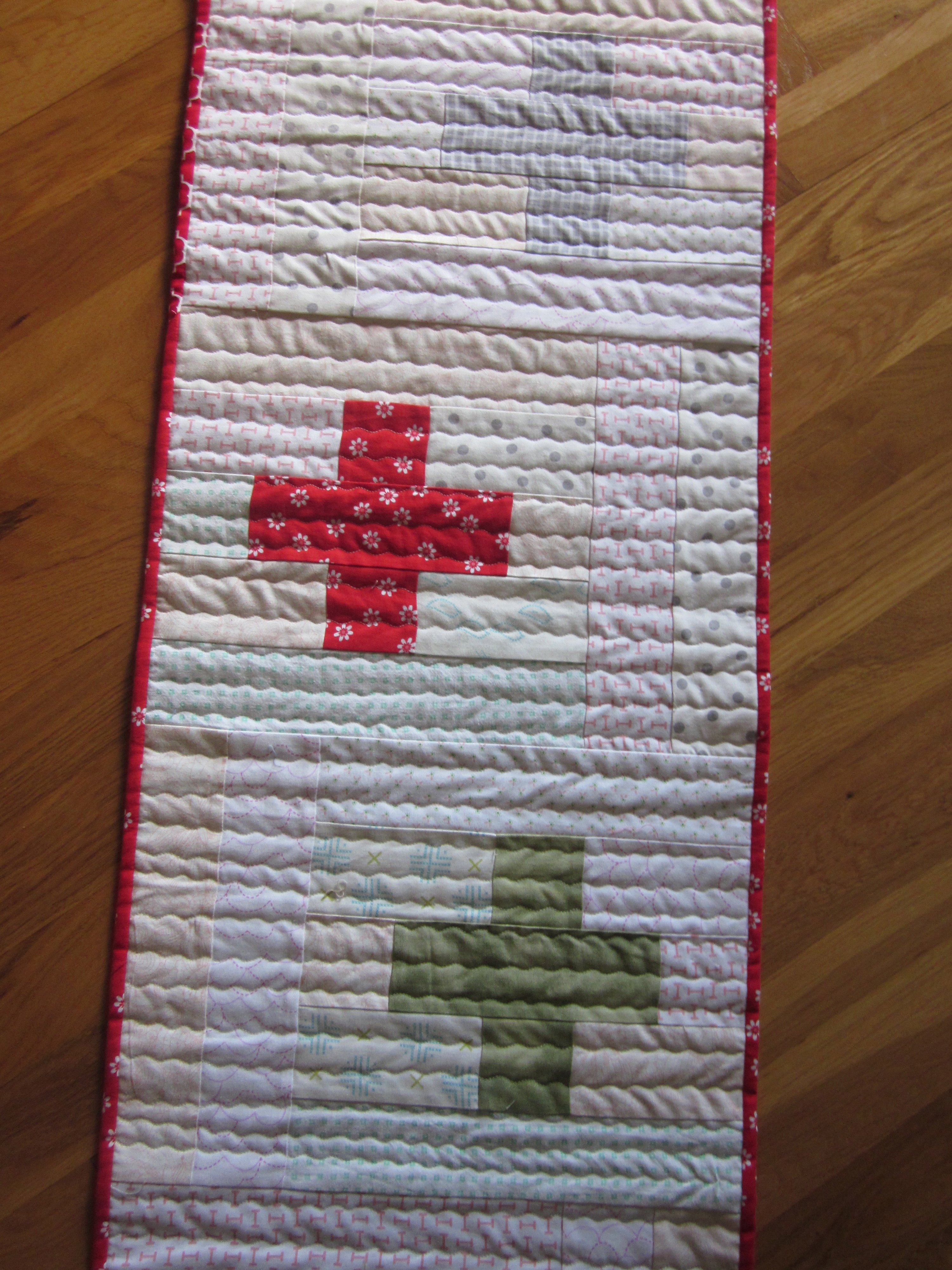 Efter förra numret av Fat Quarter såg jag flera stycken som gjorde pluslöparen som fanns i tidningen. Det gjorde jag också. Men eftersom jag tänkte ge bort den så har jag väntat till nu med att visa den.