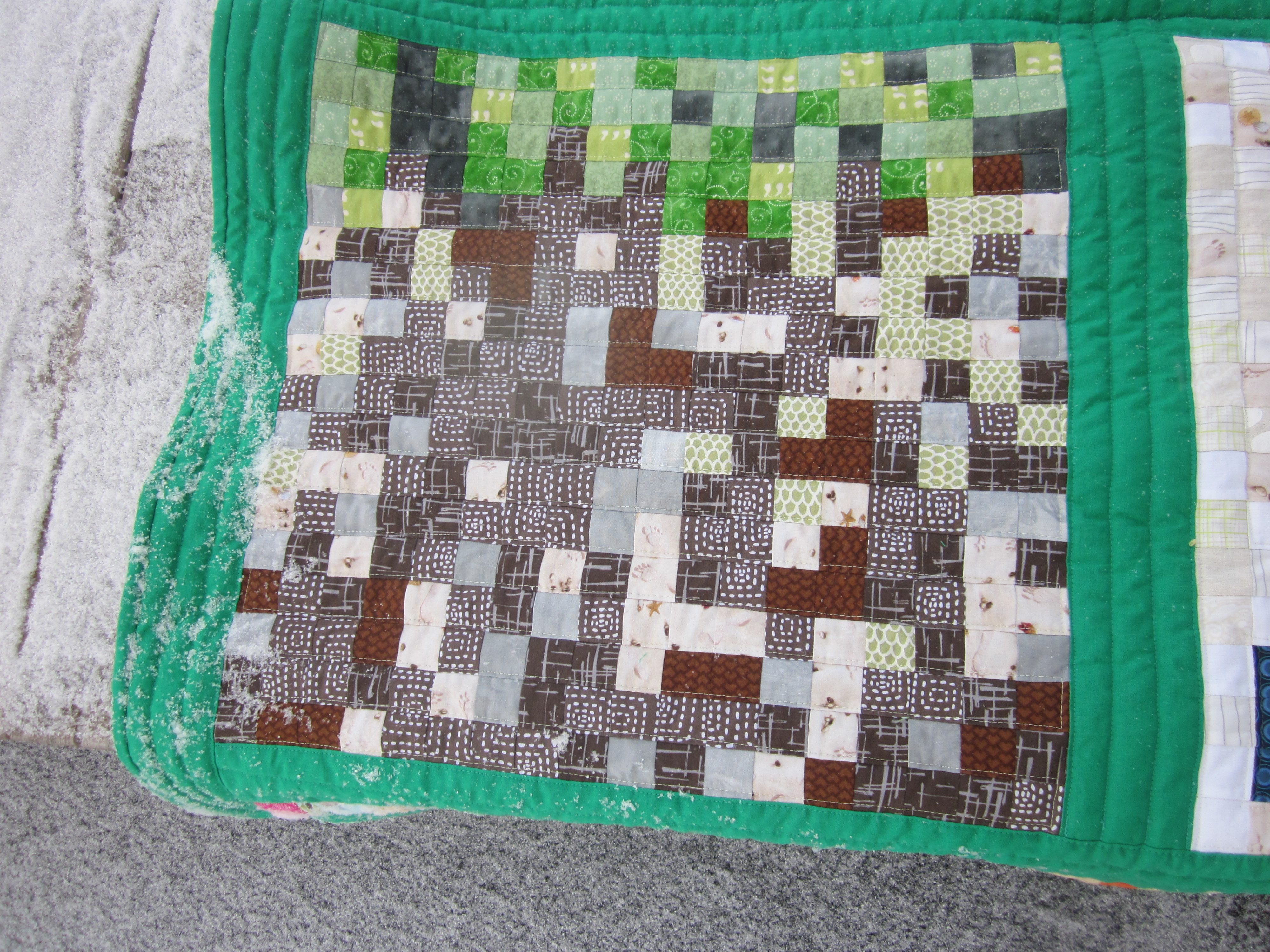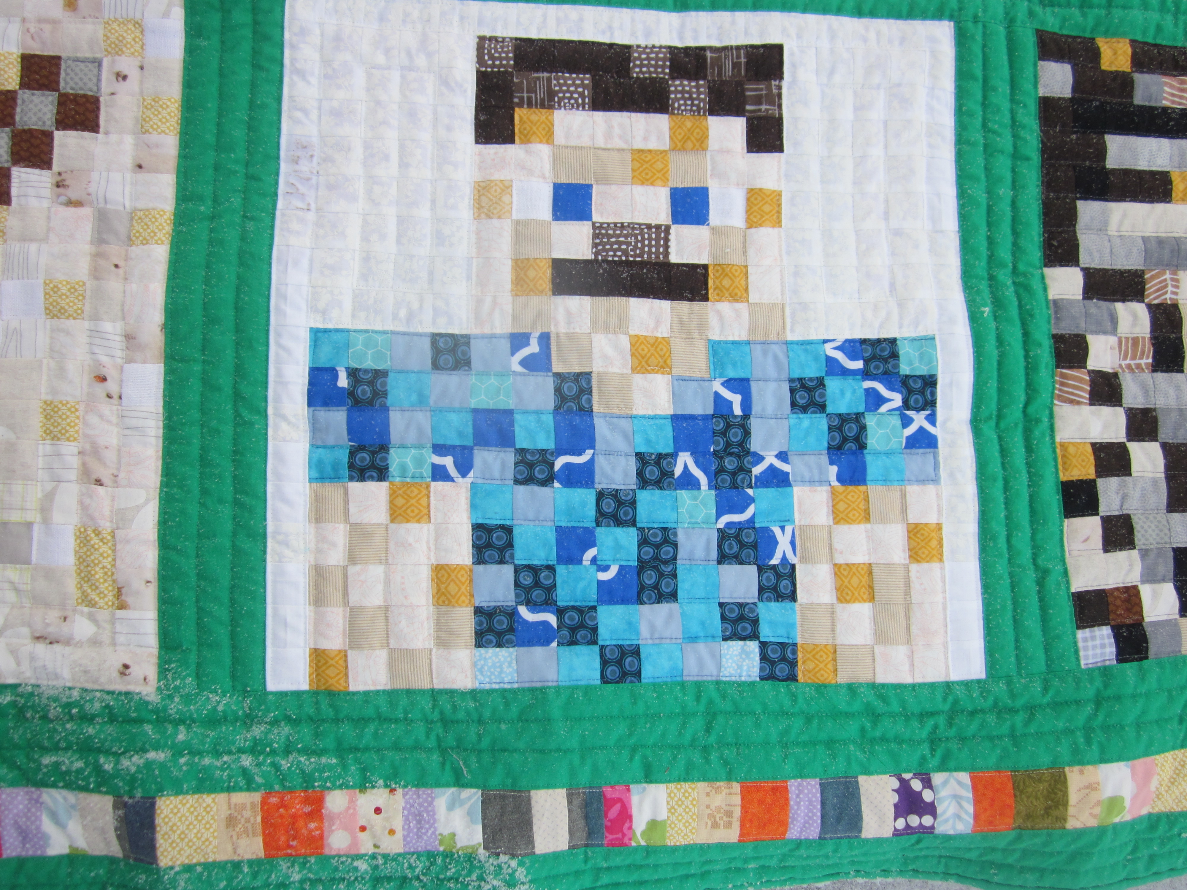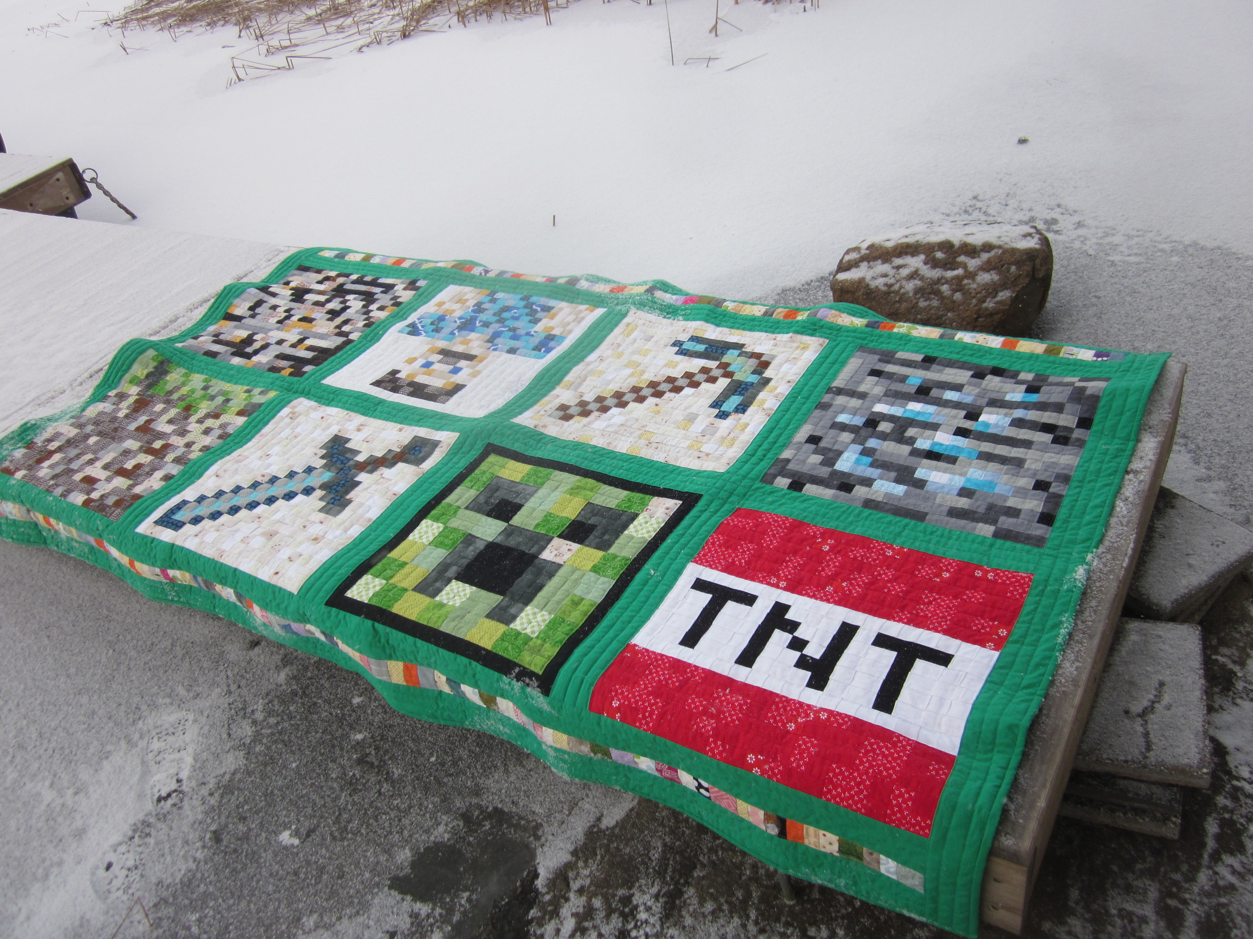 Åh, vad kul den var att sy. Varje block innehåller 256 rutor. Gånger åtta block blir alltså 2048 rutor totalt. Undrar hur många meter tråd det har gått åt? Men varje minuts sömnad var superkul. Till och med att den där söndagen jag satt och sprättade känns kul nu i efterhand. Det blev ju så mycket bättre efter sprättandet. Färdigt mått är 224 x 137 cm.