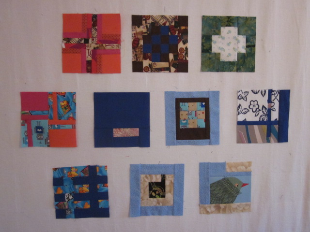 Vi kom ganska långt in i februari innan jag fick klart månadens block. Men här är de. Fortfarande bara scraps. Men nu hade jag en del nya scraps. Dels orange från omklädningen av barnbarnets stol. Och så fick jag IKEA-tyger i julklapp, dem har jag börjat använda nu.