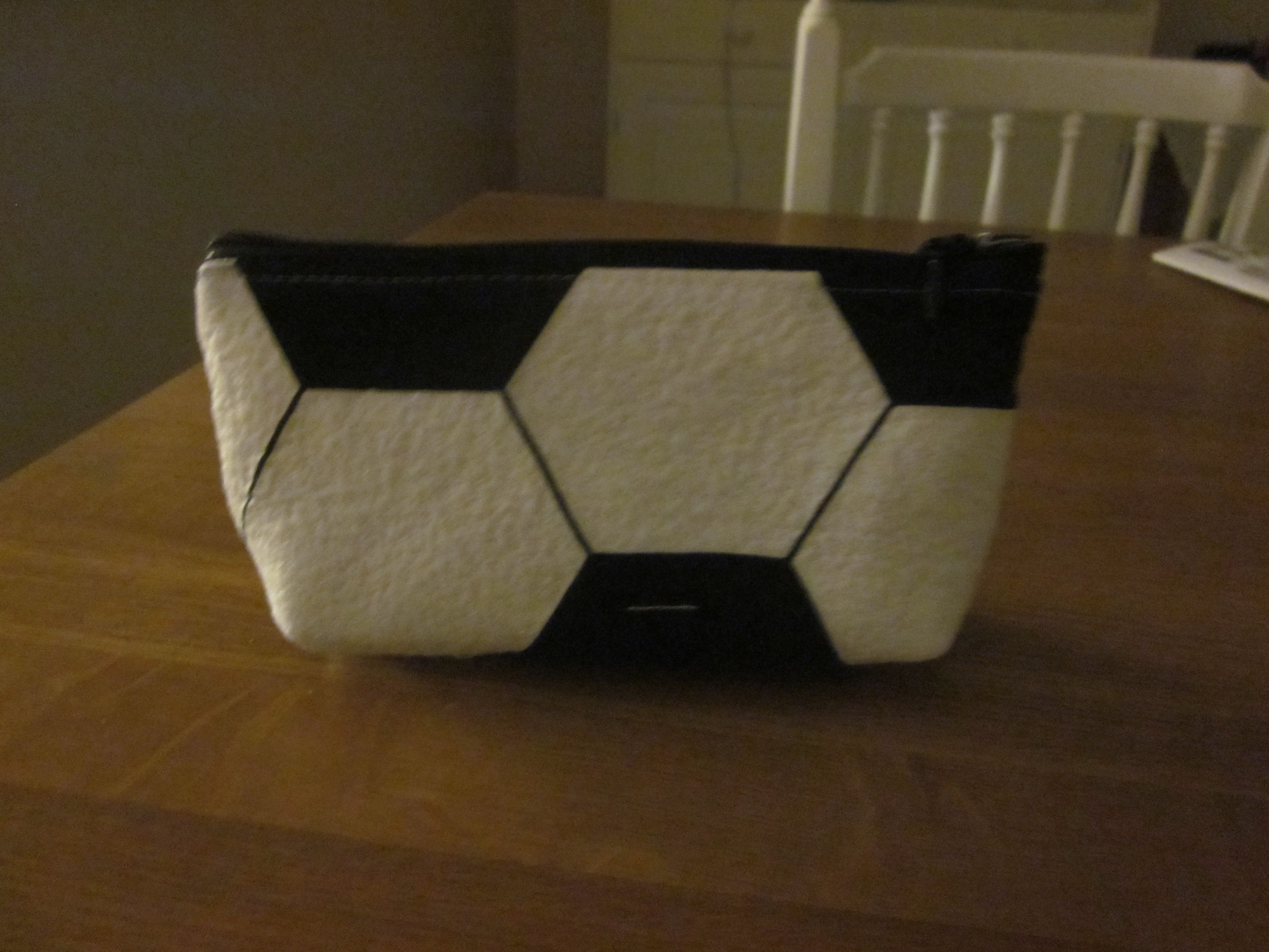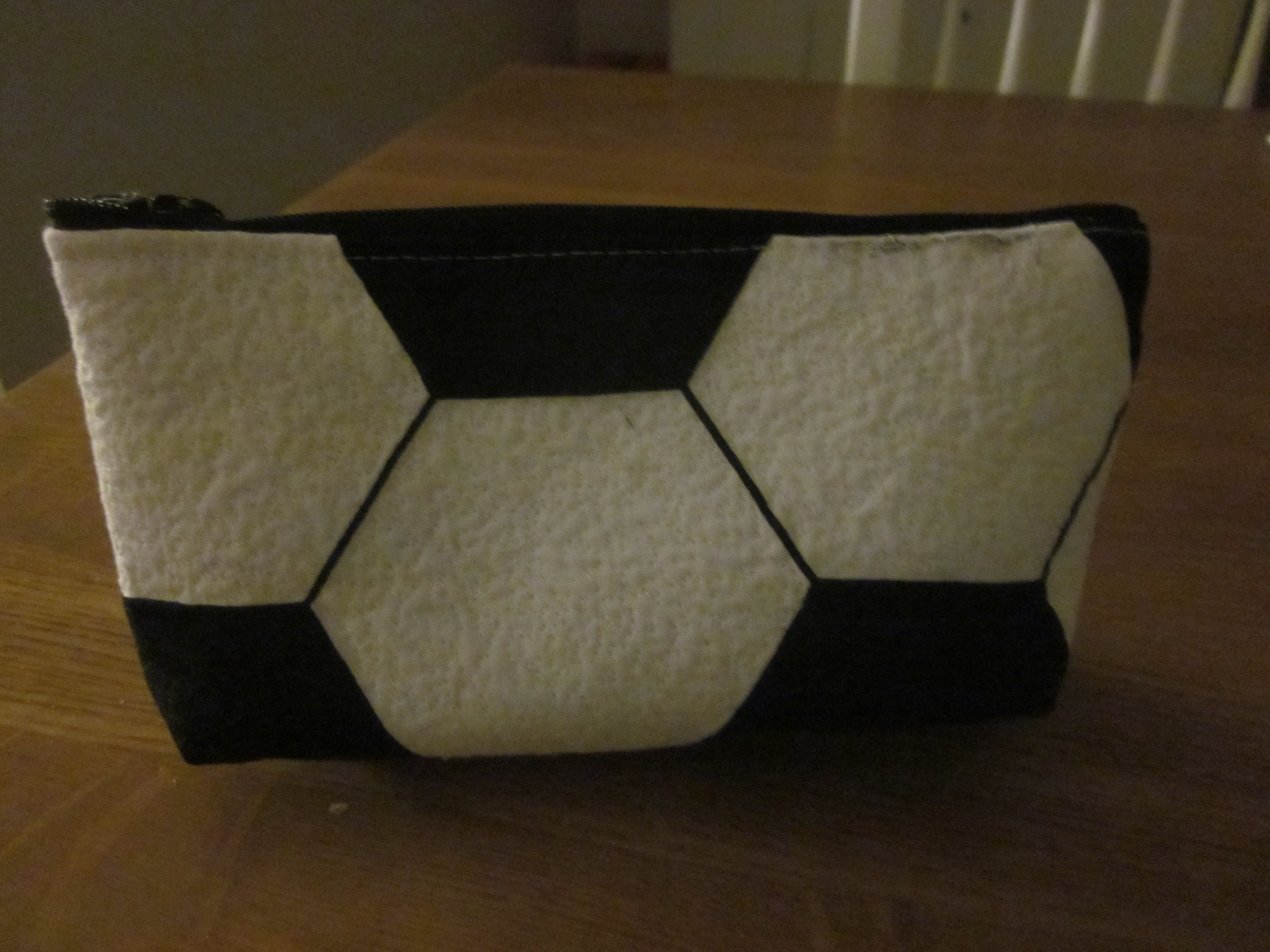 Det fotbollsspelande barnbarnets rum skulle fräschas upp. Jag fick i uppdrag att sy gardinen. Det blev så pass mycket tyg över att det räckte till en kudde.