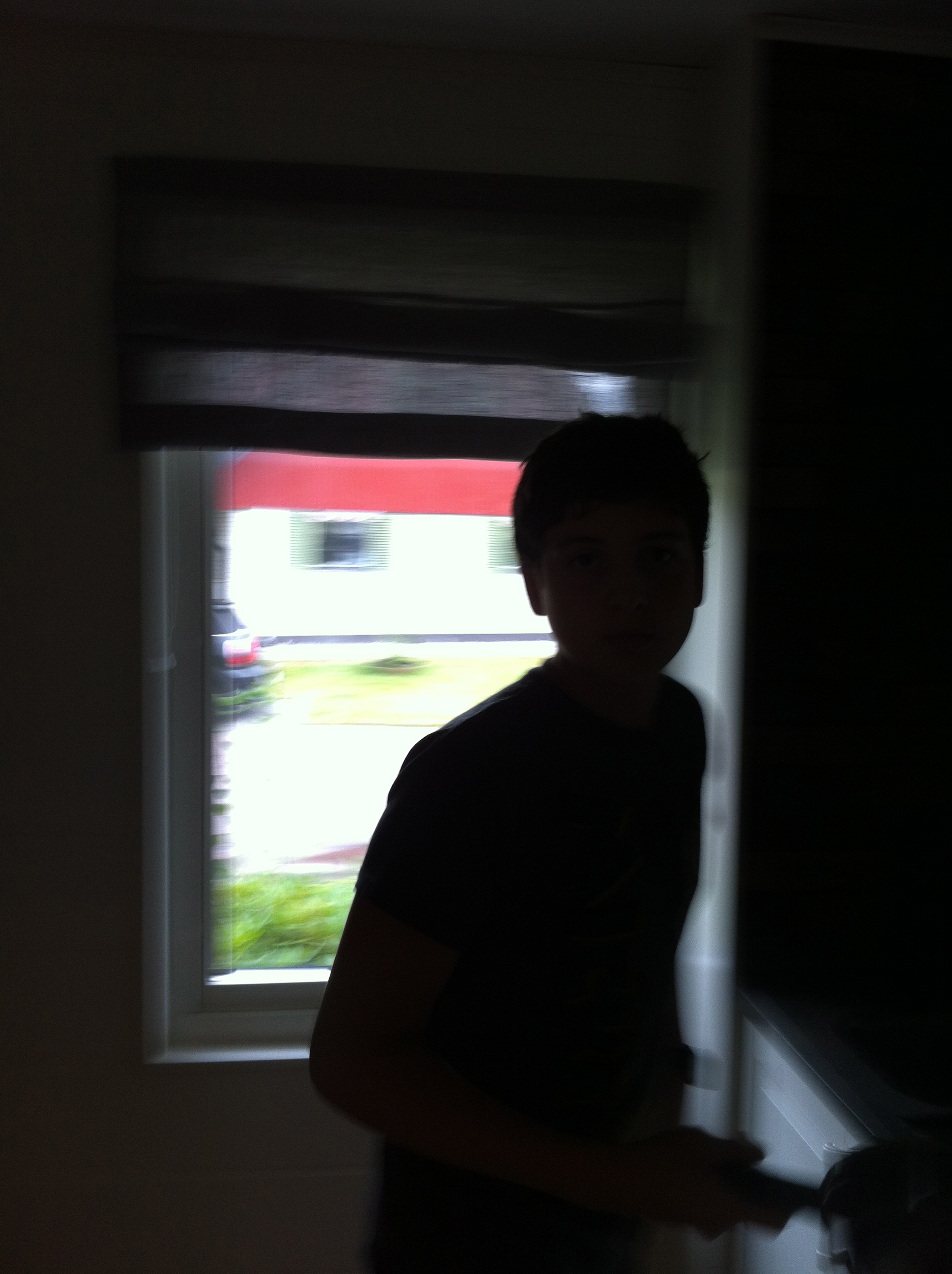 Och tom barnbarnet visar upp sig. Nä, sorry ingen stjärnfotograf här inte. Motljus klarar inte jag och min telefon av. Men man kan titta här hemmabast.net... där syns gardinerna på ett par av bilderna och även hela det nya köket.