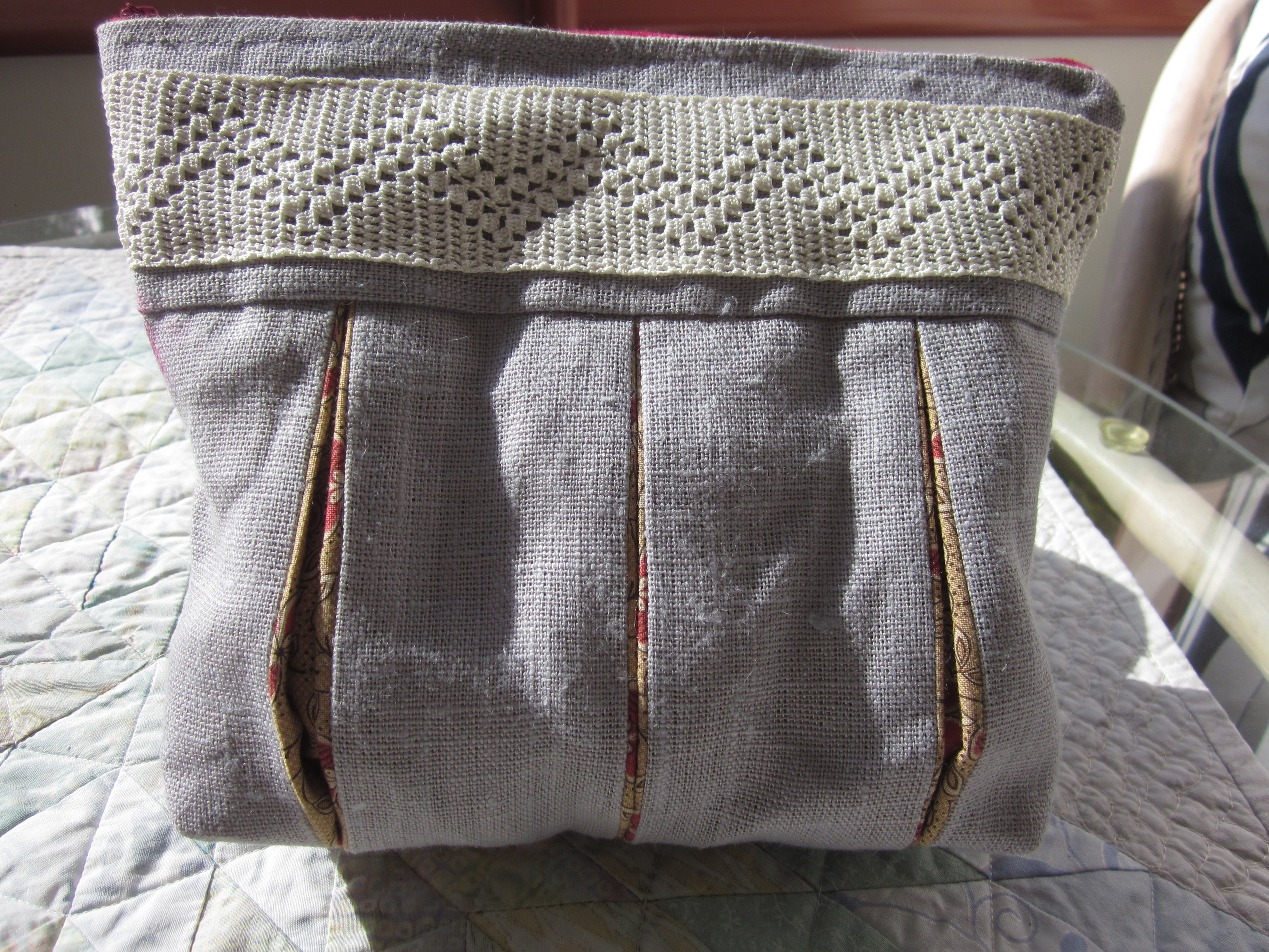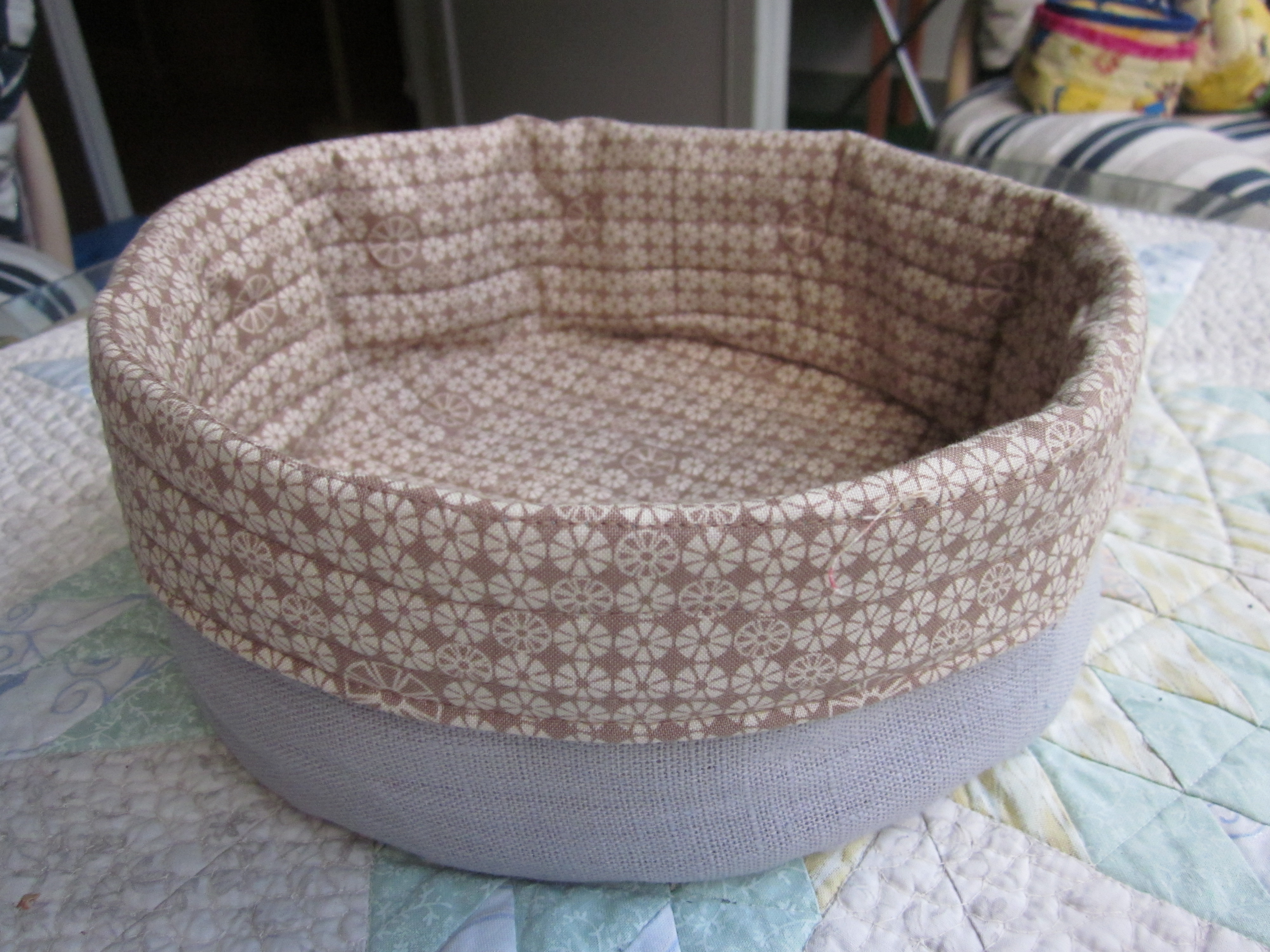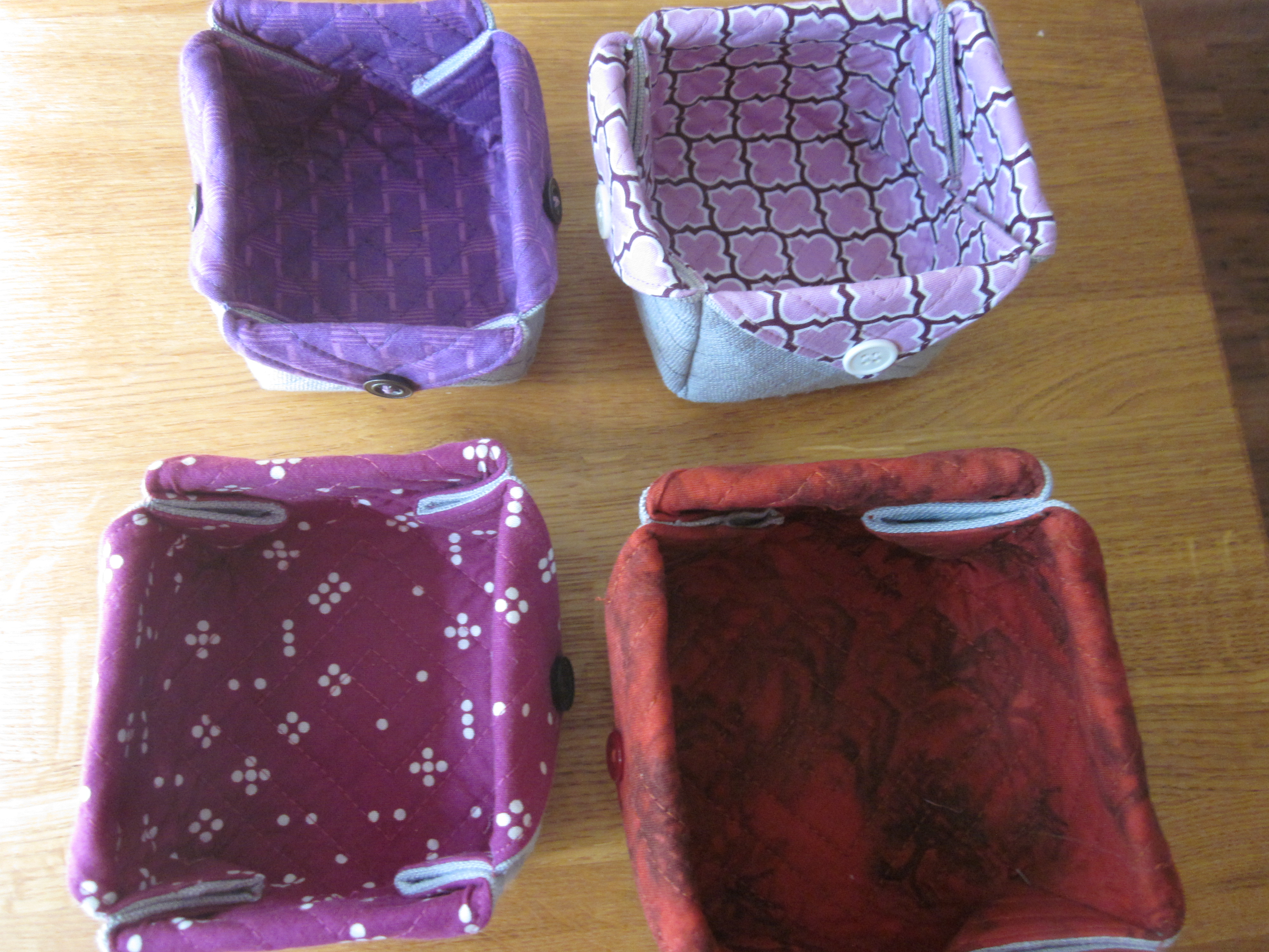Det blev en hel del rester av linnetyget, eftersom fönstren är förhållandevis smala. Så det blev fyra små burkar, en bälgnesse och en brödkorg. Brödkorgen är jag mest nöjd med, kanske skulle jag ta och göra en till mig själv också. Klicka på bilderna så syns det bättre.