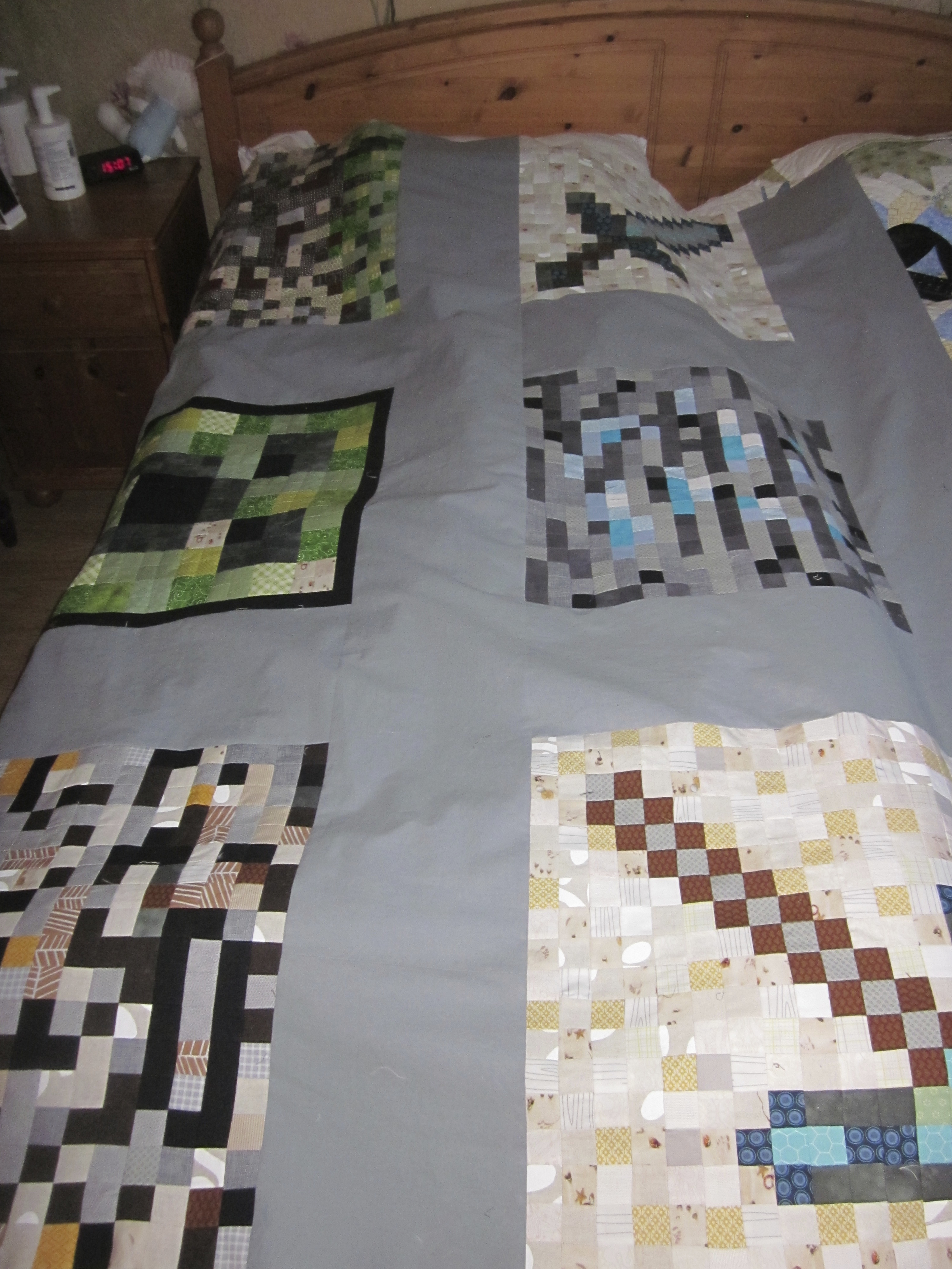 Sydde ihop mina Minecraftblock, med breda remsor emellan som jag planerat.
