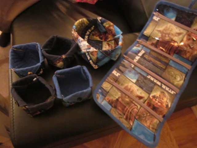 Nu ska jag lägga ut lite bilder på julklappar jag sydde. De flesta sydde jag ju i november och början av december, sen hade jag syförbud i några veckor. Man måste ju få lite annat gjort än bara sömnad. Och det är ju alltid mycket grejer på gång från lucia fram till jul. Men trots att alla grejer legat färdiga här hemma i flera veckor, så inte lyckades jag fotografera dem. Men en del fotade jag i alla fall efter att paketen öppnats. (Klicka på bilderna så blir de större.)