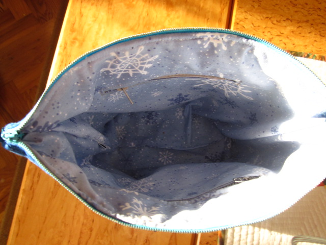 Jag rotade igenom mina mönster och hittade det allra första jag köpte. Det köpte jag från Mias Quiltbod som tyvärr inte finns kvar längre. Jag ville testa den där mittenremsan och det blev denna necessär. Jag tycker om det där mönstret.