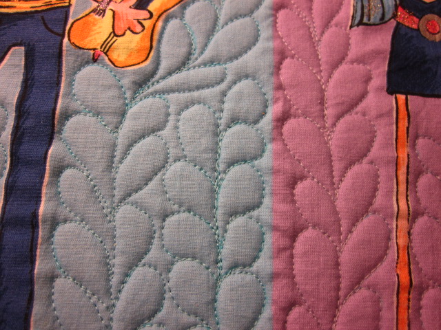 Här ovan är några närbilder på Husqvarnans quiltning.
