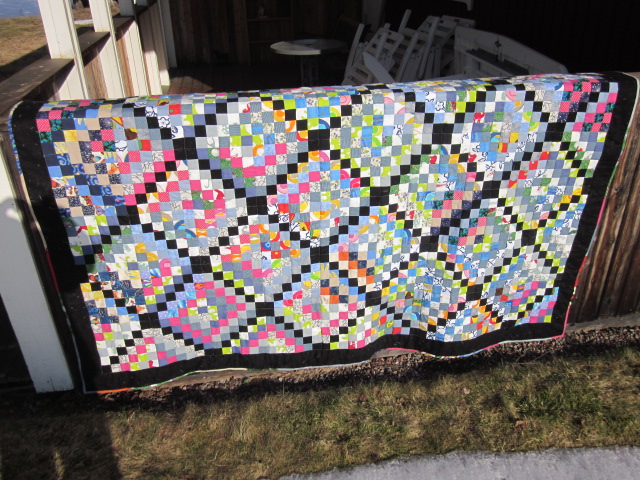 Det finns bara två bilder av täcket. Slutresultatet (daterat september 2011) blev så här. Jag tycker det är jättehäftigt. Skulle kanske göra ett till! Du kan du Maja! :)