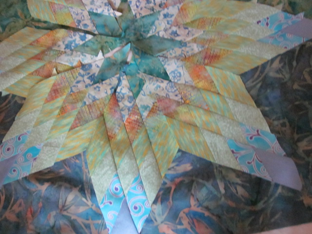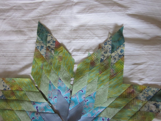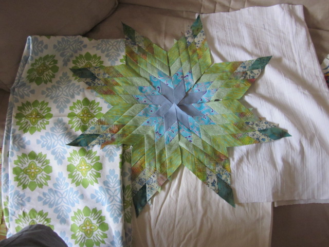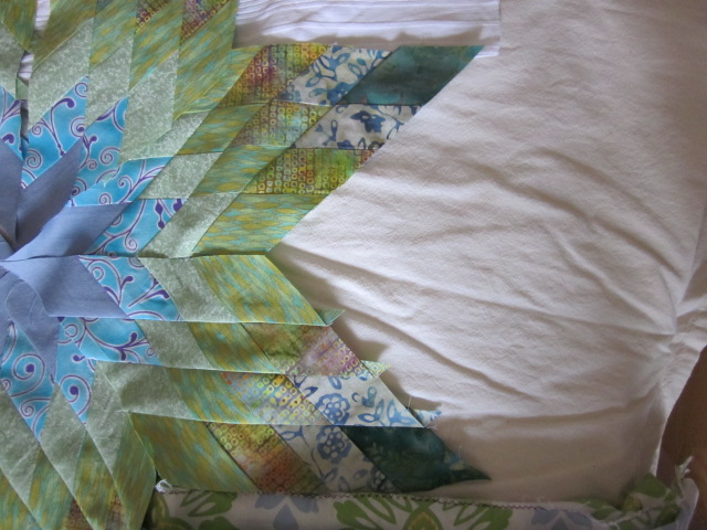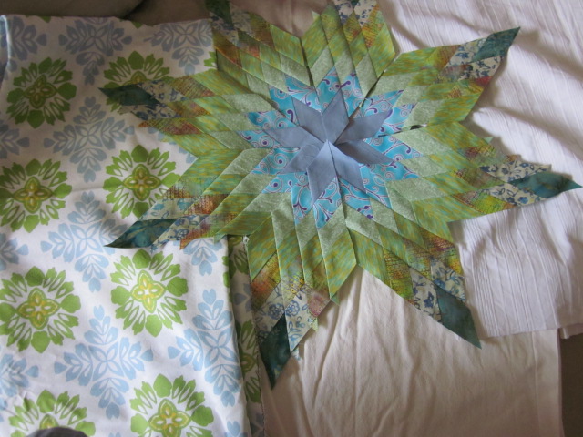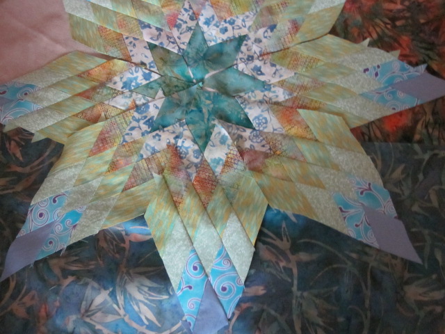 Jag tyckte det här mönstret verkade intressant och spännande. Skar remsor enligt anvisningarna till själva stjärnan och satte igång. Men jag blev lite sur, för bara cirka en tredjedel av de tillskurna remsorna behövdes.