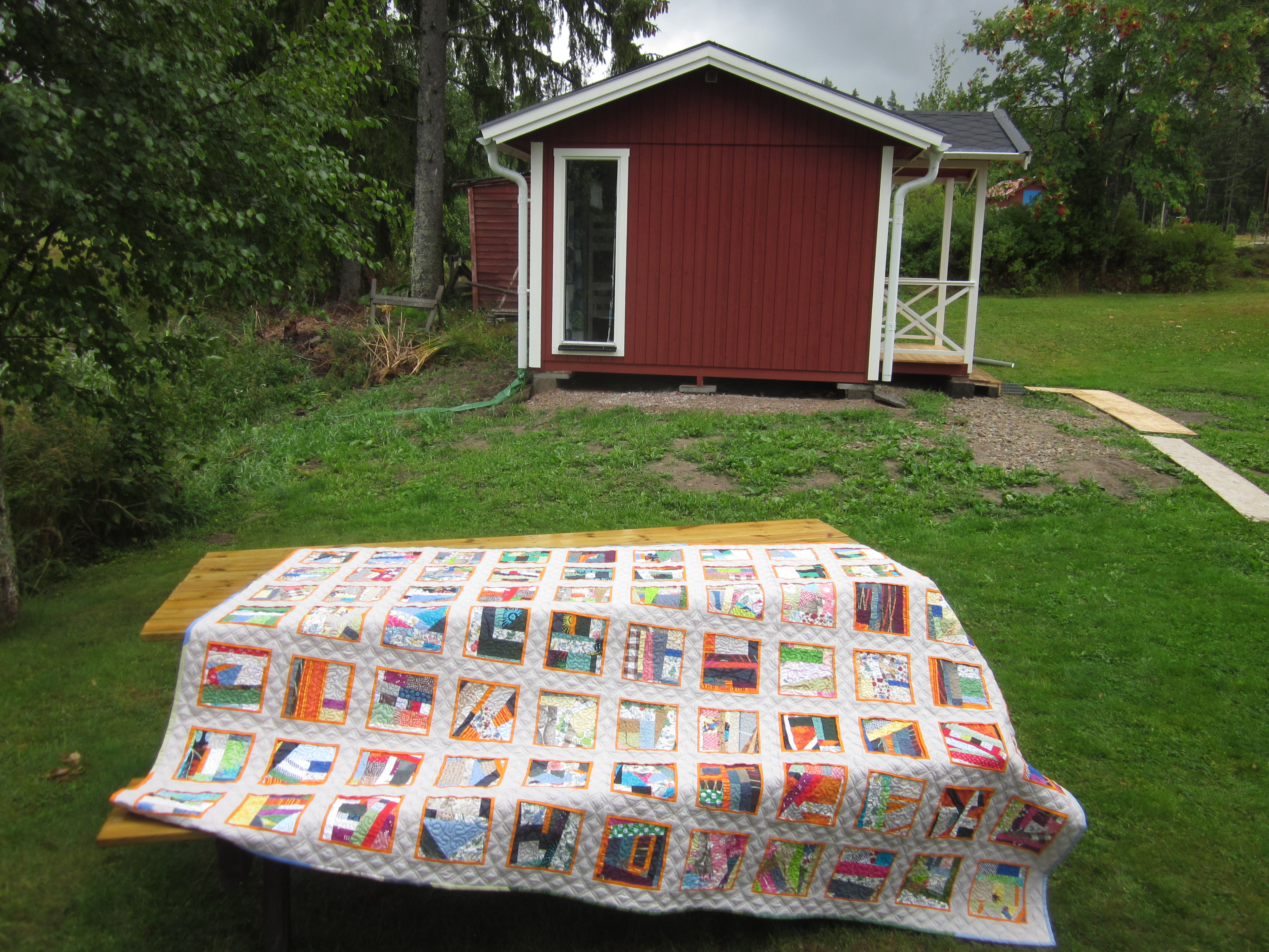 Summa summarum är jag väldigt nöjd med den här quilten. Här en länk till Gun och hennes Scrap Happy Day rutigt.wordpress.com. Ska gå dit och kolla nu. Se om jag hittar flera idéer på vad man ska göra med alla scraps. För tänk, trots att jag inte sytt speciellt mycket sedan denna quilt blev färdig så ligger lite nya scraps där och väntar!
