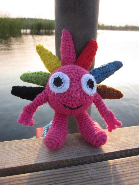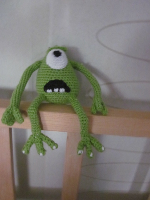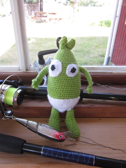 Lite grann har jag faktiskt virkat under semestern. Ett par till Babblare blev det, ett par bokmärken och ett enögt monster. Men oftast var det ju för varmt att virka och hålla i garnet.