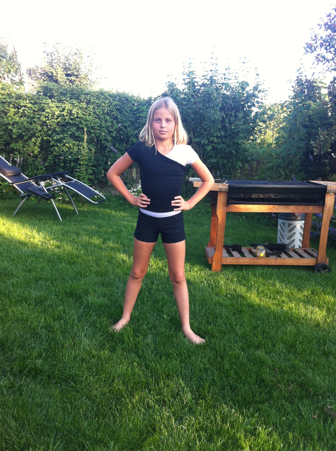 Under tiden jag funderar ska jag sy danskläder till barnbarnet och hennes kompis. Här har jag gjort en till testsömnad. Fast de ska ha långbyxor, inte som de på bilden. Första tävlingen är nån gång i september så det är väl dags att sätta fart. Ska bli kul och spännande.
