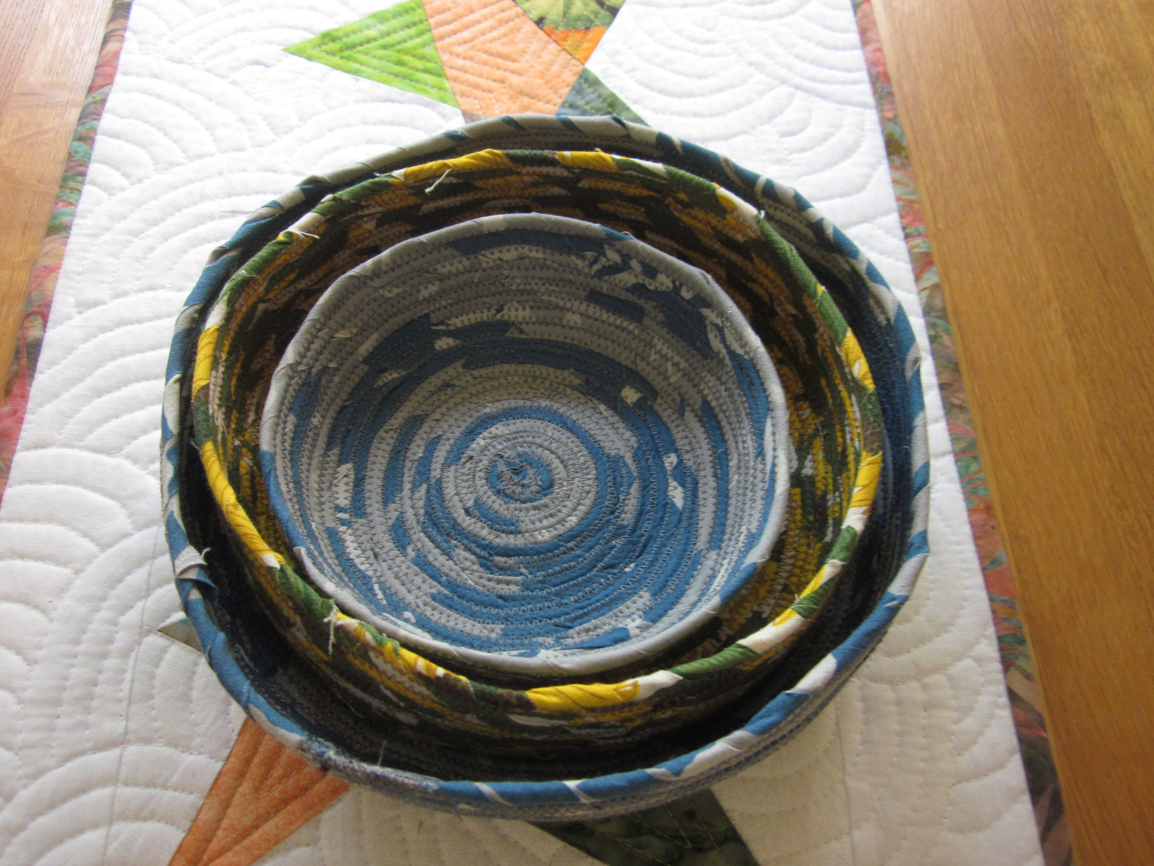 Jag satte omedelbart igång att sy några skålar. Tycker de är så gulliga. Använde bara gamla fultyger.